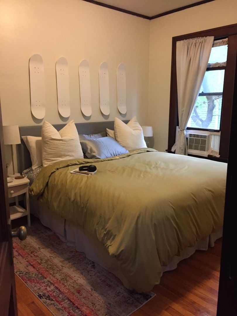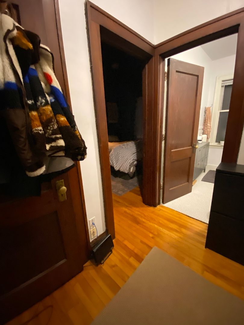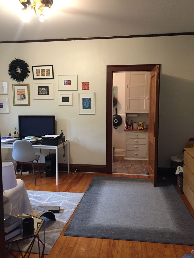One bedroom apartment. Unit has tall ceilings, hardwood floors and natural woodwork. Heat, water, and garbage included in the rent and tenant pays for electricity, cooking gas for the stove, and internet/phone/cable if desired. Laundry is on site. There are limited off street parking stalls for rent for $75/month. 8x5 storage locker included in the rent cost. One month damage deposit. We do not accept dogs, but cats are welcome, up to two cats with $200 pet deposit (No pet rent).