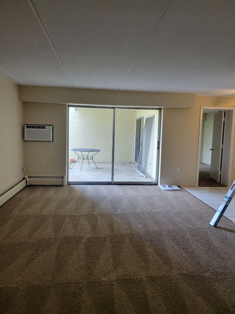2 Bedroom apartment: 1100/sf Lots of closet space. Heat, water, and garbage included in the rent and tenant pays for electricity, and internet/phone/cable if desired. All units have stove, refrigerator, and dishwasher. Coin operated laundry is on the main floor in each building. Units have either a walkout or large patio. We do not accept dogs, but cats are welcome, up to two cats with $200 pet deposit. One month damage deposit.